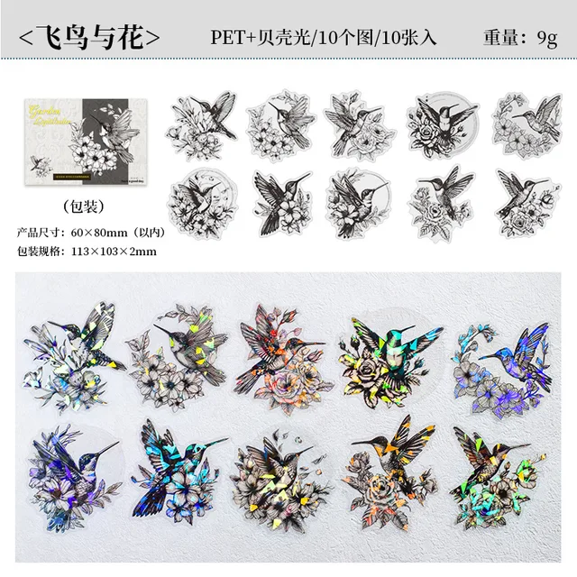 10pcs/1lot Shell light plant line drawing PET sticker